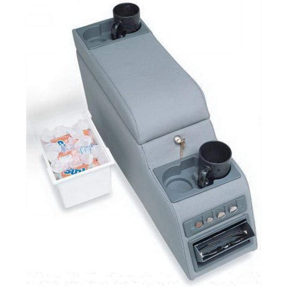 Rampage Denim Black Locking Center Console is designed to provide an efficient solution for our various needs such as additional storage, facilitate writing during travel, arm rest and organizer. This center console includes 2 sets of cup holders that facilitate the front and rear passengers to safely secure hot and cold beverages. It also consists of a large comfortable padded armrest along with a writing area. This center console features a large storage compartment along with a removable organizer change tray. Recessed, removable cooler holds a 6 pack of soda.